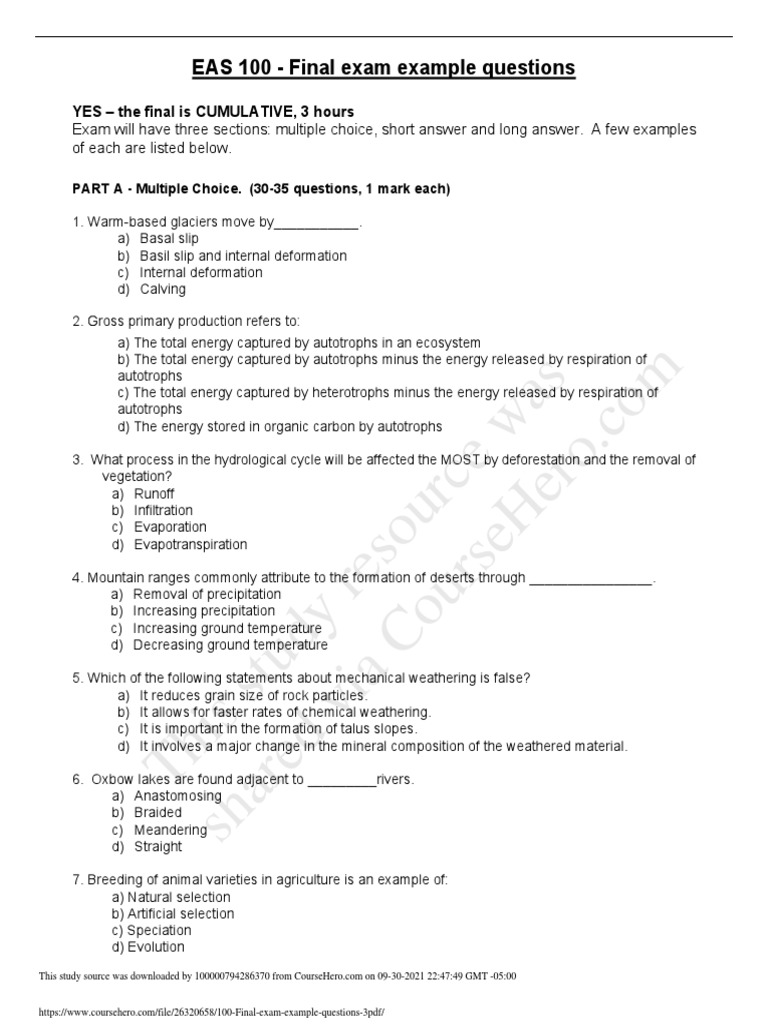 This Study Resource Was EAS 100 Final Exam Example Questions PDF